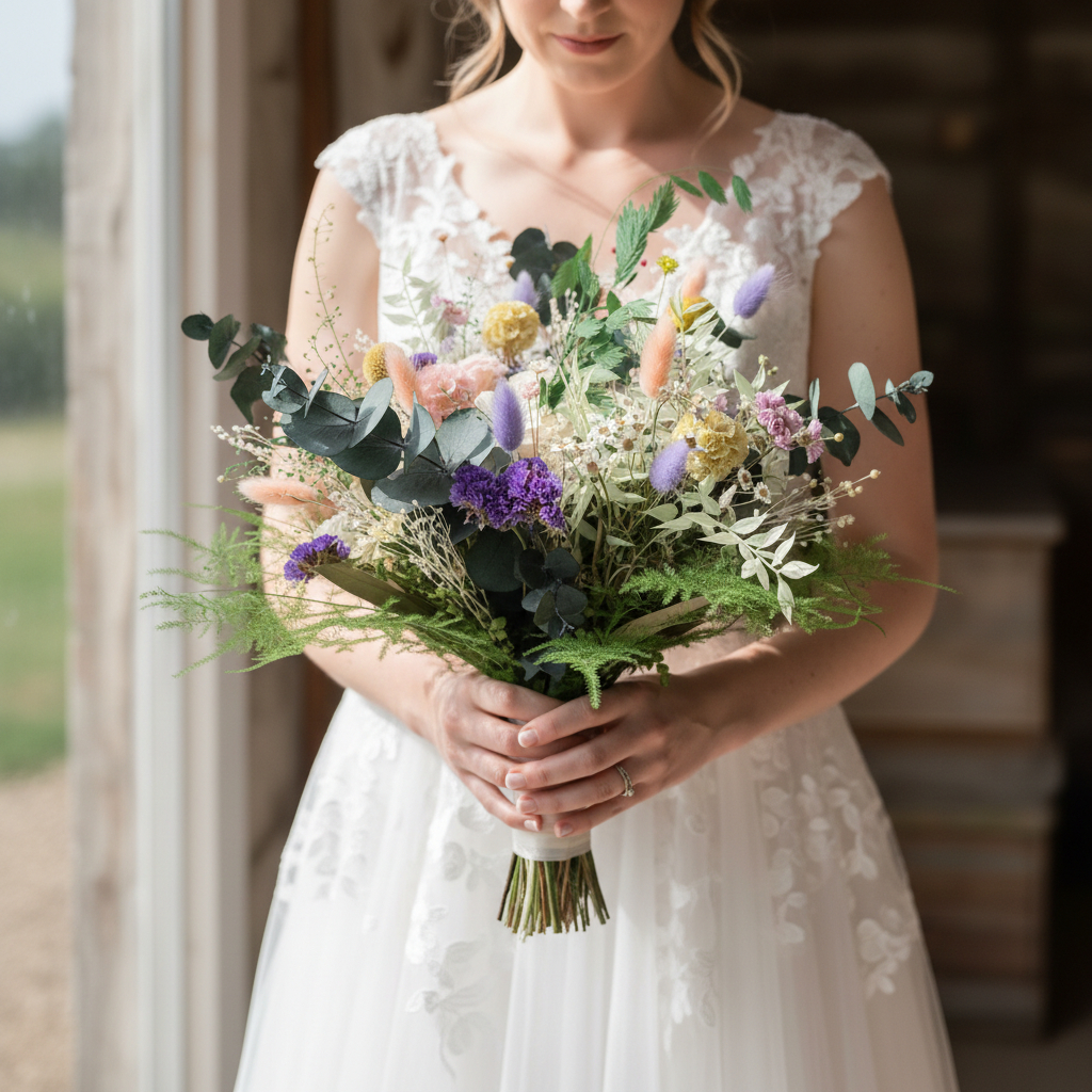 - Ved at bruge tørrede eller evighedsblomster kan man designe unikke dekorationer og buketter, der passer perfekt til bruden og brylluppets stil og tema.